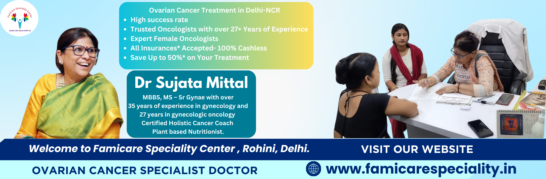 If you or a loved one is seeking an Ovarian Cancer Specialist Doctor, look no further than Dr. Sujata Mittal at Famicare Specialty Center. Together, we can navigate this journey towards recovery.
